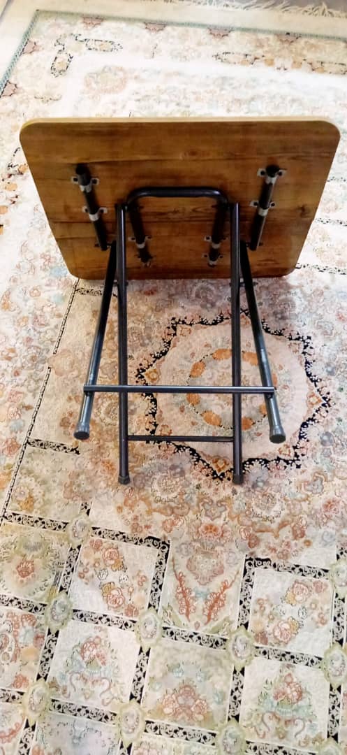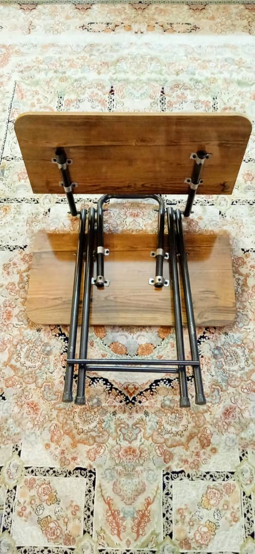 میز ناهار خوری تاشو مدل 222ترکیبی از چوب mdf و فلز ساخته شده که چوب و فلز محکمی دارد و برای مسافرت یا توی پارک یا توی حیاط خو نه قابل استفاده است واین میز براحتی توی صندوق ماشین جامی شه چوب میز در اندازه58×58می باشد که از وسط تامی شود و55سانتی متر ارتفاع دارد.